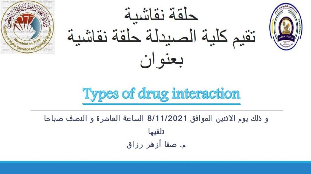 تقيم كلية الصيدلة – جامعة المثنى حلقة نقاشية بعنوان ( Types of drug interaction) تلقيها التدريسية ( م. صفا أزهر رزاق) يوم الاثنين الموافق 8/11/2021 الساعة العاشرة […]