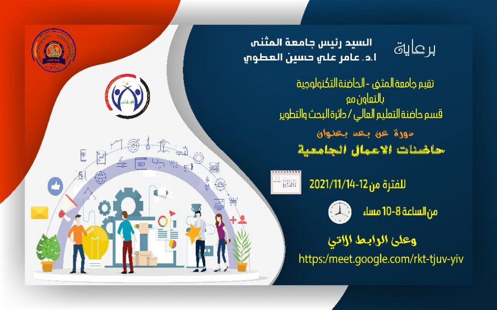 تقييم جامعة المثنى/ الحاضنة التكنولوجية بالتعاون مع قسم الحاضنة التكنولوجية في دائرة البحث والتطوير دورة عن بعد بعنوان ( حاضنات الاعمال الجامعية) للفترة من 12-14/11/ 2021 […]