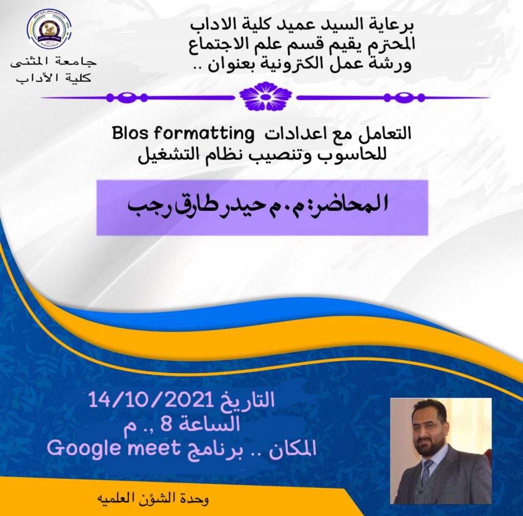 يقيم قسم علم الاجتماع كلية الاداب ورشة عمل الكترونية بعنوان التعامل مع اعدادات Blos formottng المحاضر م.م حيدر طارق رجب بتاريخ 14/10/2021 الساعة الثامنة مساء عبر […]