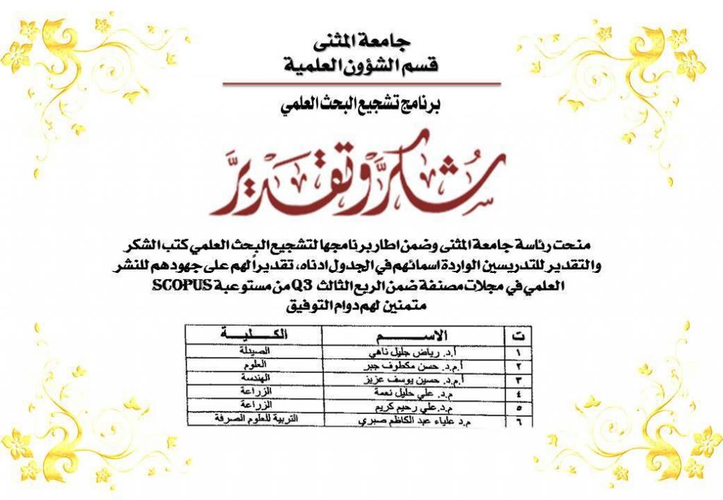 منح كتب شكر وتقدير للنشر في مجلات Q3