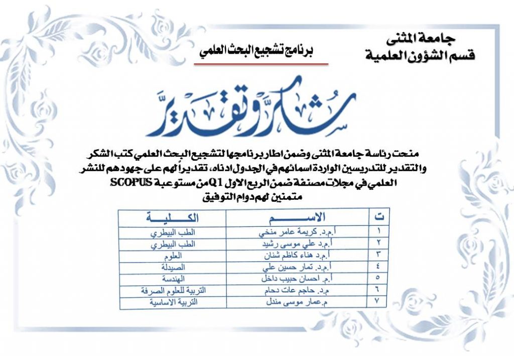 منح كتب شكر وتقدير للنشر في مجلات Q1