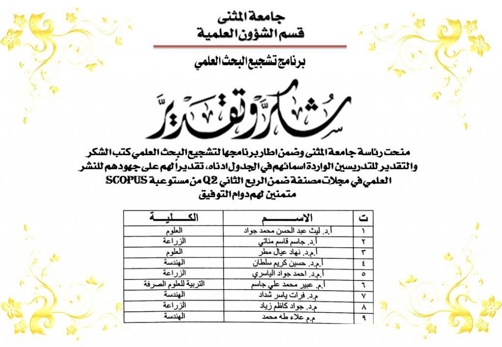 منح كتب شكر وتقدير للنشر في مجلات Q2